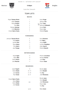 Warriors halfback Chanel Harris-Tavita and second rower Eliesa Katoa come straight back into the starting side for Saturday’s 16th-round NRL encounter with the Newcastle Knights at Scully Park in Tamworth (3.00pm kick-off local time, 5.00pm NZT).