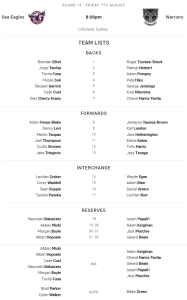 The only other change is on the extended bench with outside back Gerard Beale named in jersey #22 replacing middle forward Josh Curran.
