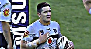 Dynamic interchange forward Lauaki, who also had a hand in Ropati’s try, reached out to score and provide the visitors with two-point halftime lead that seemed implausible just 20 minutes earlier. Man of the match Lauaki scored his second try from a dubious Nathan Fien pass 12 minutes into the second half, and the Warriors appeared set for victory when Manu Vatuvei miraculously forced a Grant Rovelli grubber kick just inside the dead-ball line with a quarter of the match remaining.