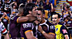 In the pocket for a late one-pointer attempt, the 21-year-old Broncos winger took advantage of Roosters defenders rushing out of the line to hot-step his way to an unforgettable touchdown.