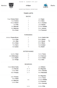 The line-up is otherwise unchanged from the one used against the Titans with Tohu Harris again named in the #12 jersey and Karl Lawton in #13 although they have swapped roles on game day recently with Harris deployed in the middle.