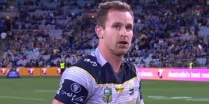 Cowboys: 1 Ben Hampton, 2 Kyle Feldt, 3 Justin O’Neill, 4 Javid Bowen, 5 Antonio Winterstein, 6 Michael Morgan, 7 Johnathan Thurston (c), 8 Matthew Scott (c), 9 Jake Granville, 10 Jordan McLean, 11 Gavin Cooper, 12 Coen Hess, 13 Jason Taumalolo