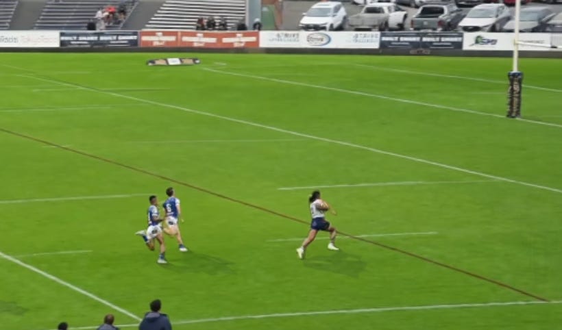 Leiataua’s burgeoning reputation as one of the game’s best intercept merchants — having already bagged a crucial 50-metre try by the same method at NRL level this year — got another boost when he plucked Jayden Berrell’s pass out of the air with a Jets overlap beckoning.