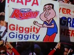 BANNERS: We’ve spent many a sleepless night trying to figure out the possible connection between Family Guy and the Roosters. The only conclusion we can draw is that the owners of the ‘Giggity Giggity’ banner featuring Glenn Quagmire and the Stewie Griffin ‘Victory Is Ours’ sign are merely combining their two great loves.