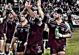 Bear with me here, because Jack Gibson’s NSW side featuring seven debutants was flogged by a record 36-6 in game one. Of the seven, Mario Fenech was never selected for subsequent series while Greg Alexander left the Origin arena with an unenviable record of six losses from six appearances. But Laurie Daley, Bradley Clyde, Glenn Lazarus, Chris Johns and John Cartwright all played key roles in the Blues’ 1990s dominance.