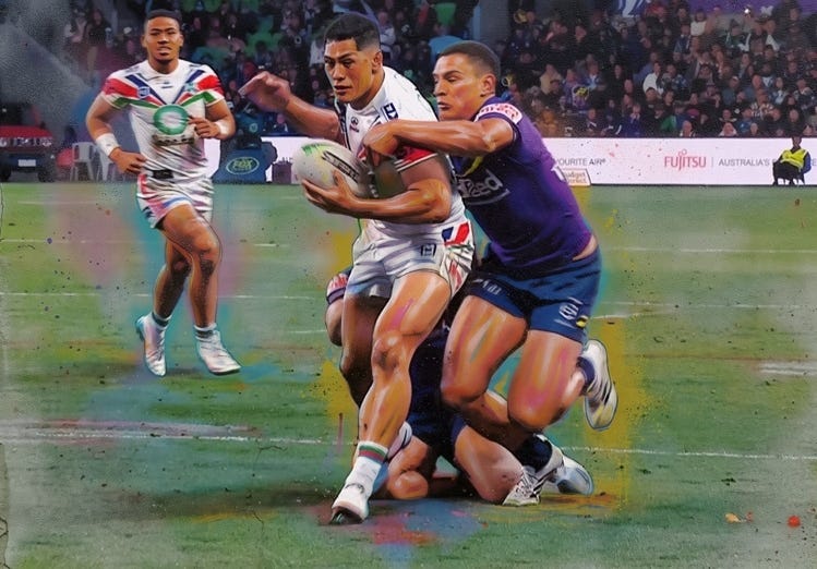 The visitors completely demolished the Storm in the middle of the park, finishing well ahead in run metres (1,442 to 1,242), post-contact metres (518 to 382) and average set distance (33.56 to 31.07). That helped translate into a 6-3 line-break count in the Warriorsโ favour.