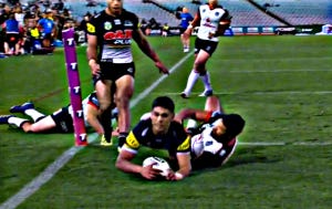 If that wasn’t disastrous enough, inspirational captain and fullback Roger Tuivasa-Sheck was carted off with a knee injury soon afterwards. Errors with the ball and in defence from Solomone Kata in the subsequent sets allow Peachey to dive in for a double.