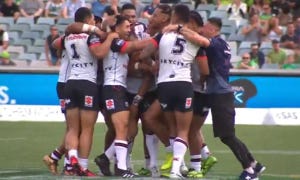 Tohu Harris splits the defence on the right edge and gets his side back in the game!#TelstraPremiership#NRLRaidersWarriors#NRL pic.twitter.com/xAHJZYA6sV