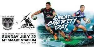 The Vodafone Warriors have today announced plans to stage “the biggest charity game day in New Zealand sport” when they take on arch rivals the Melbourne Storm at Mount Smart Stadium on Sunday, July 22 (4.00pm kick-off).