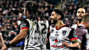 6 BLAKE GREEN (c): Got the Warriors rolling with a try-assist on each edge for his second-rowers with deft short balls. The second for Tohu Harris was a real peach. Also racked up 19 tackles and kicked well, before slipping into a support role as Johnson, Luke and co. started carving up on the right. 8